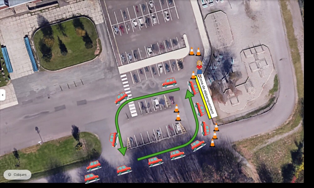 À partir du lundi 4 novembre, nous allons modifier la zone de débarquement des élèves en auto. Le schéma ci-joint qui vous indique la nouvelle zone de débarquement.